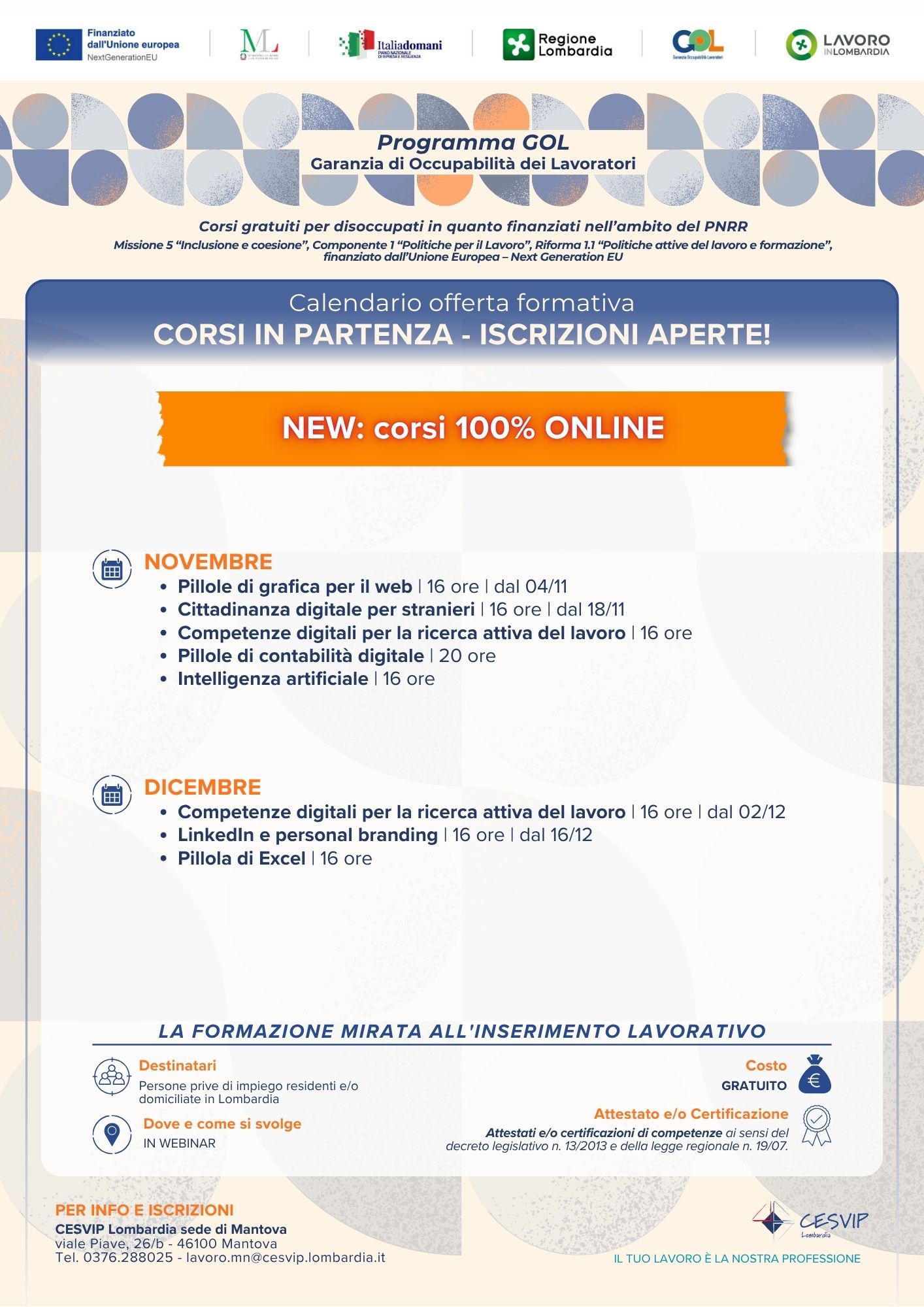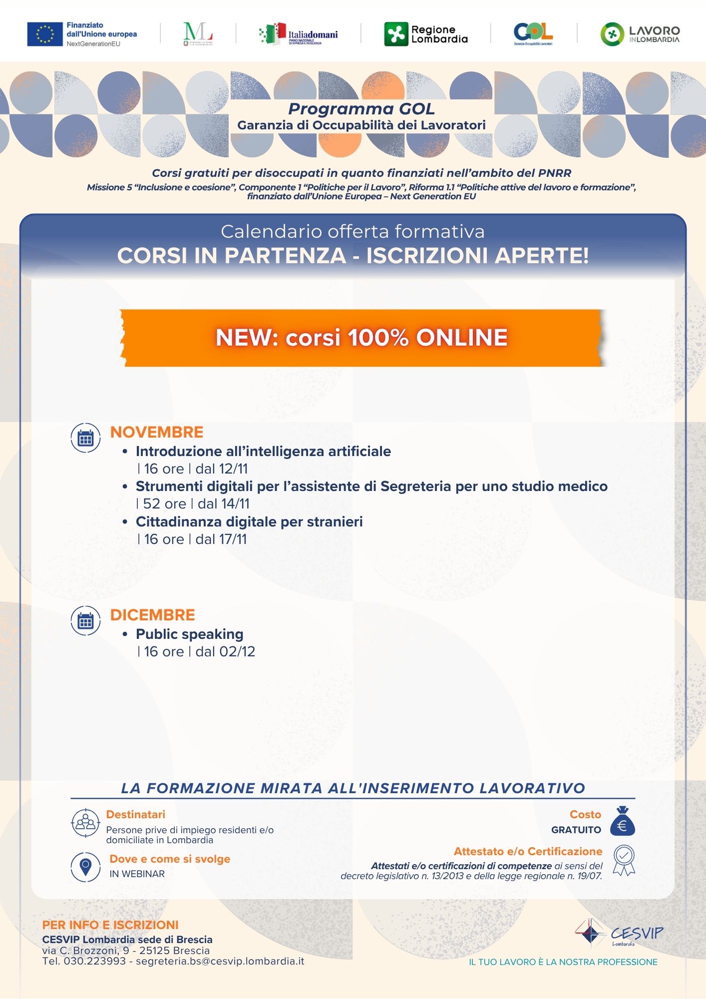 - corsi BREVI 100% ONLINE: novembre-dicembre