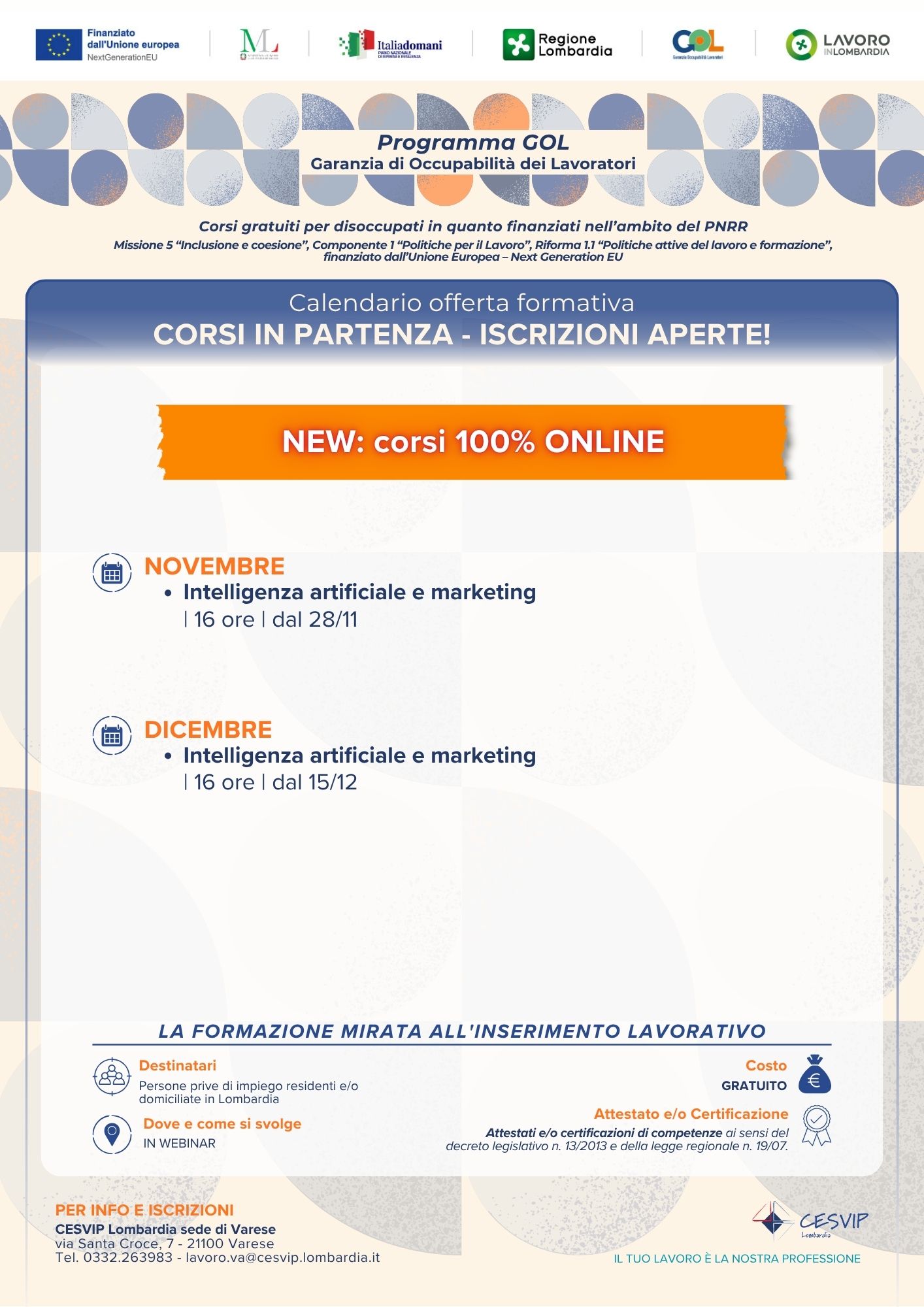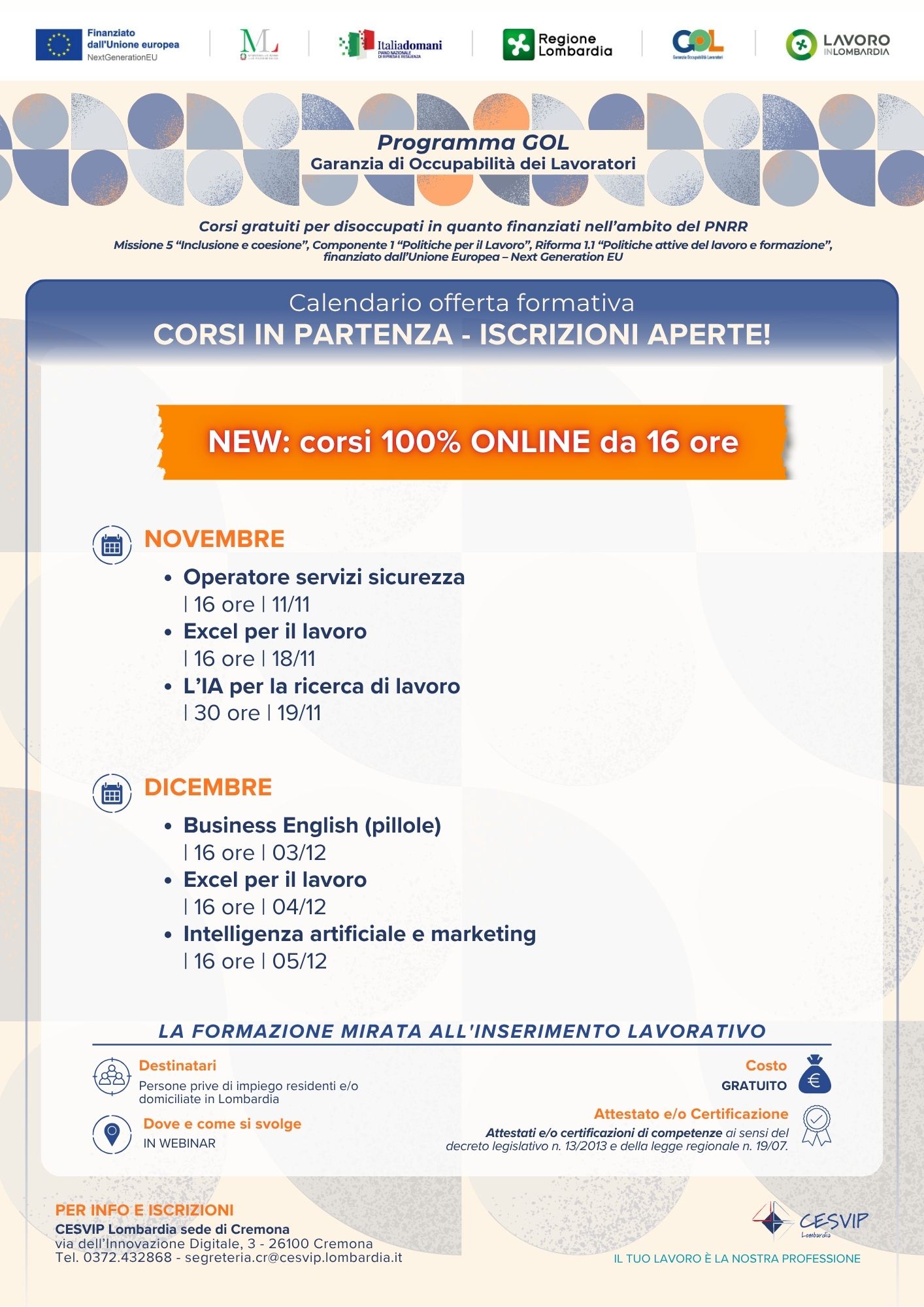 NEW! Scopri anche i corsi 100% ONLINE da 16 ore