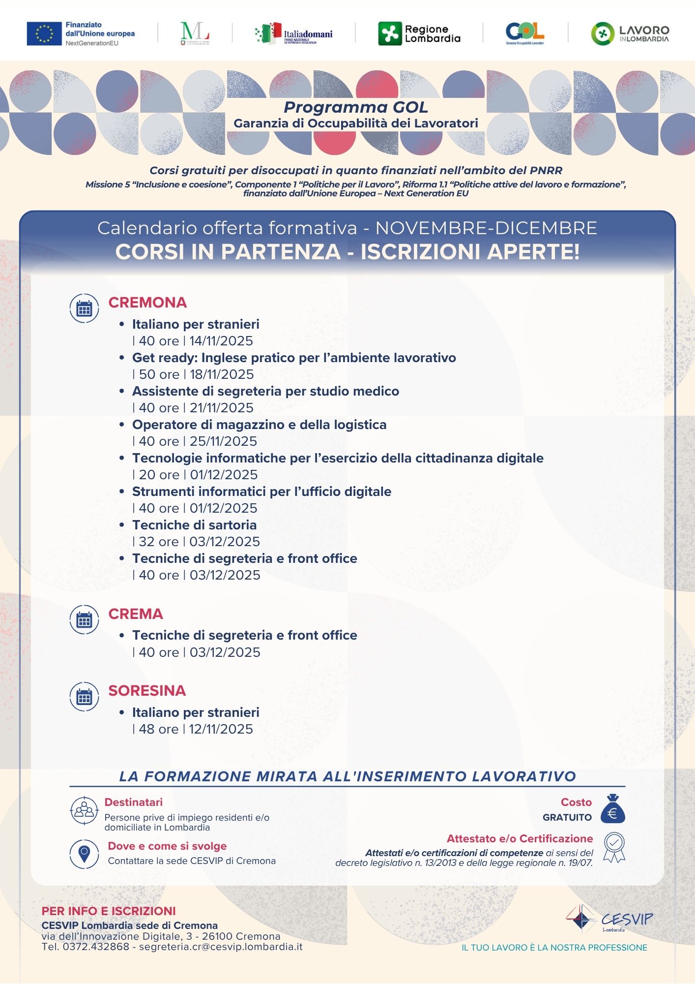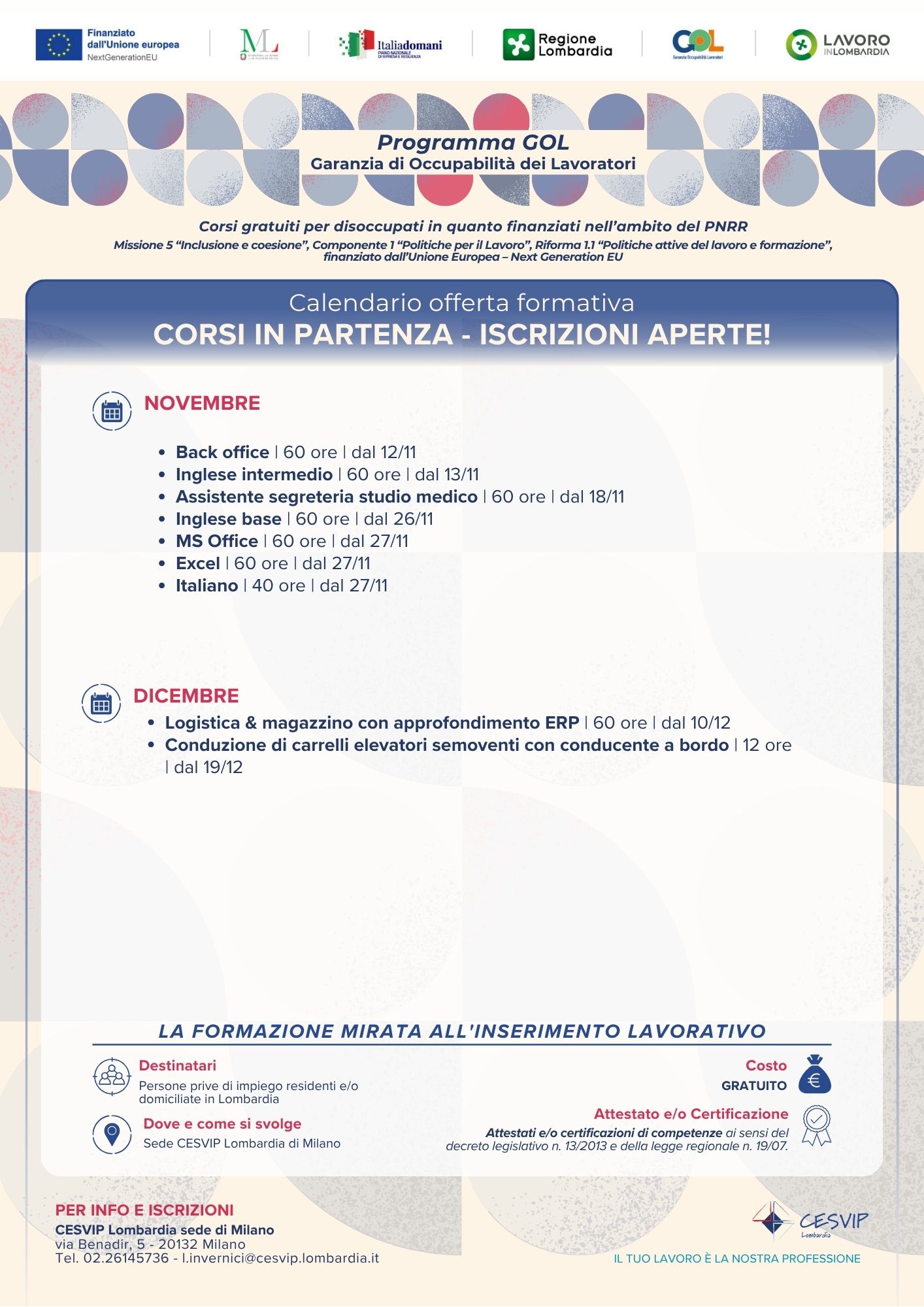 CLICCA QUI SOTTO E SCOPRI I PROSSIMI CORSI IN PARTENZA: