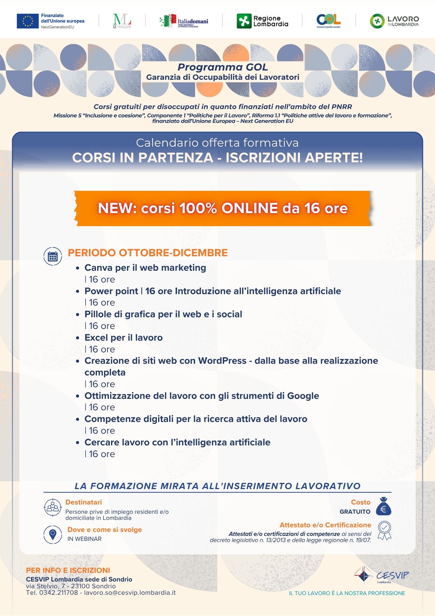 - corsi BREVI 100% ONLINE: ottobre