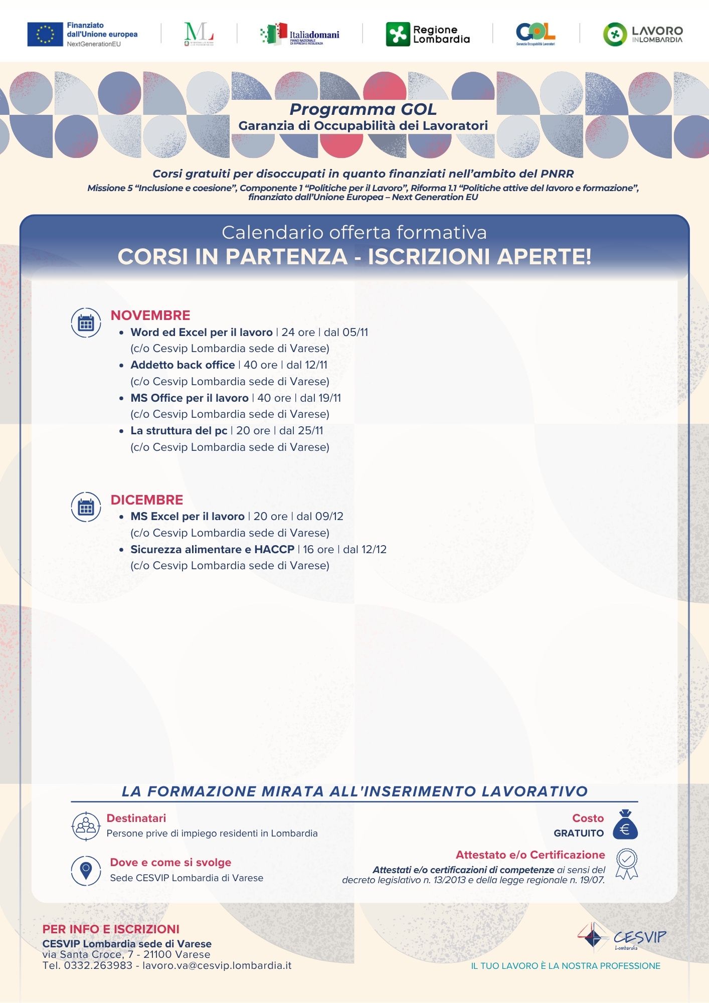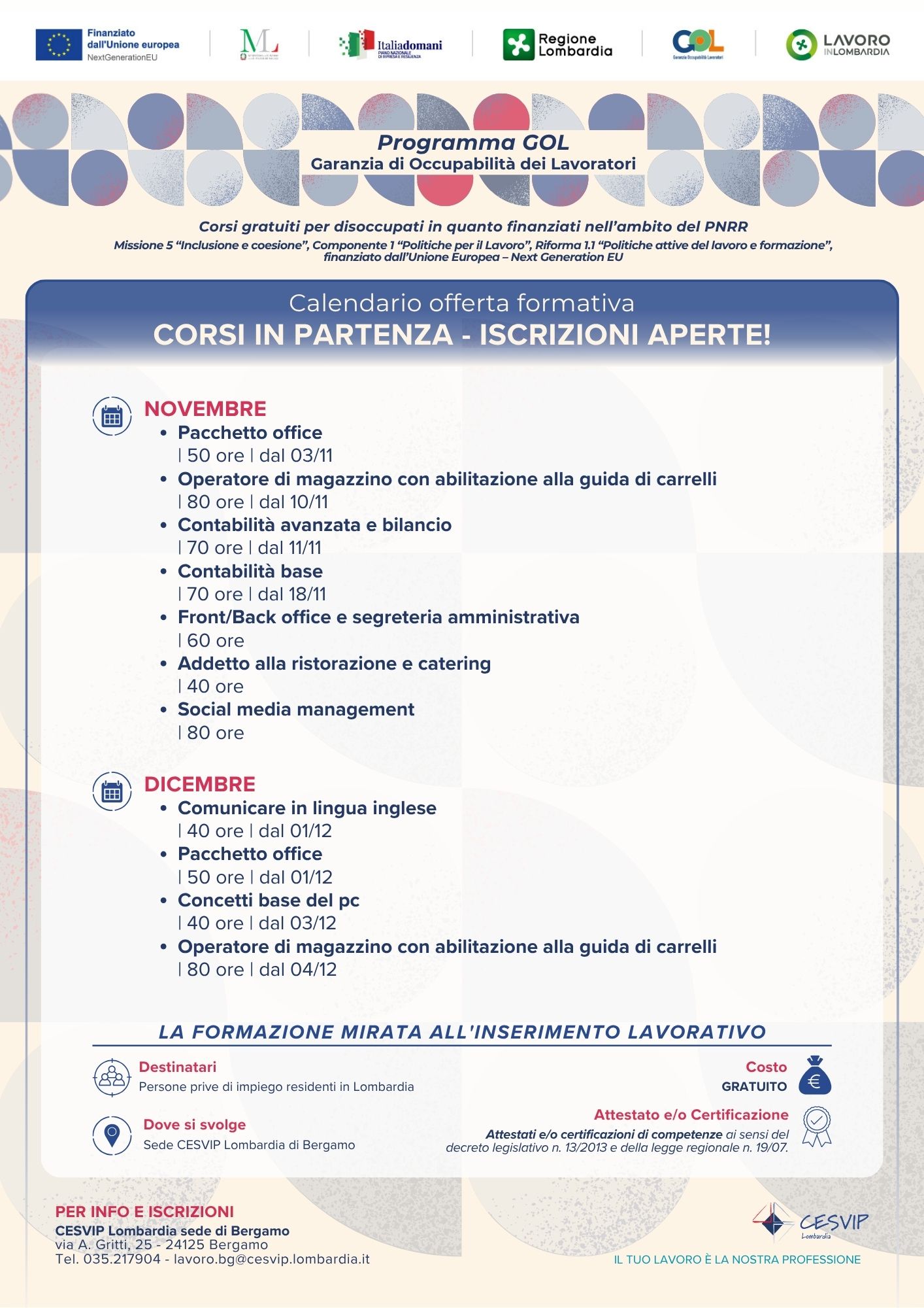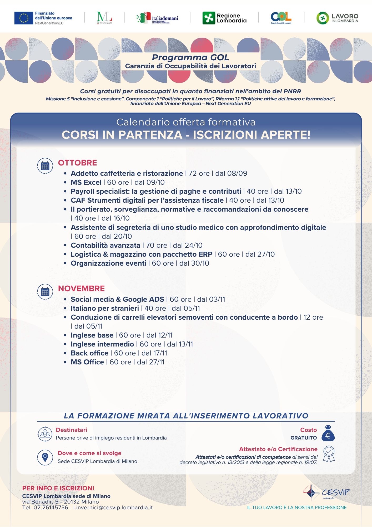 Il programma GOL (Garanzia di Occupabilità dei Lavoratori) di Regione Lombardia consente a persone prive di un impiego residenti e/o domiciliate in Lombardia di accedere a: