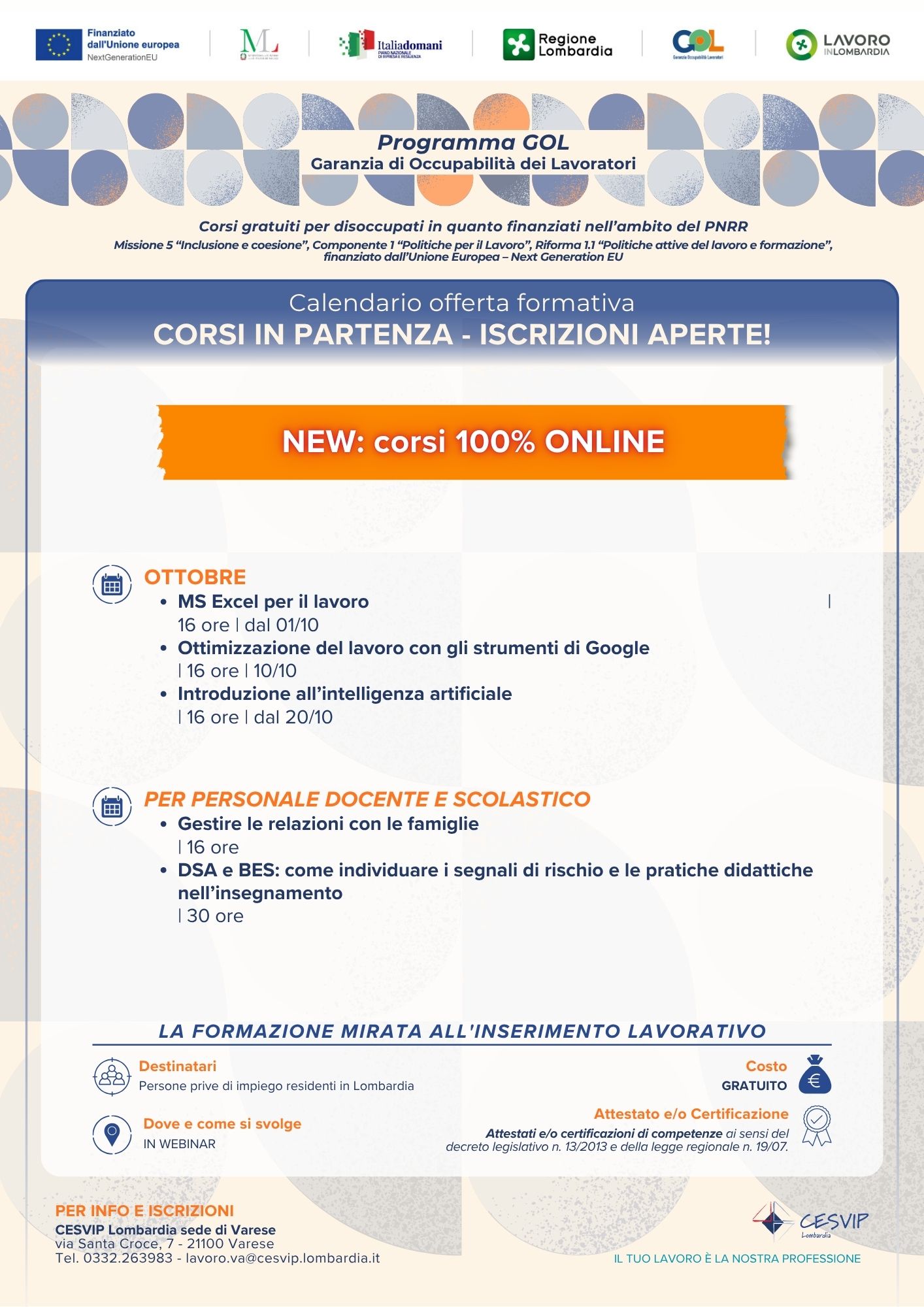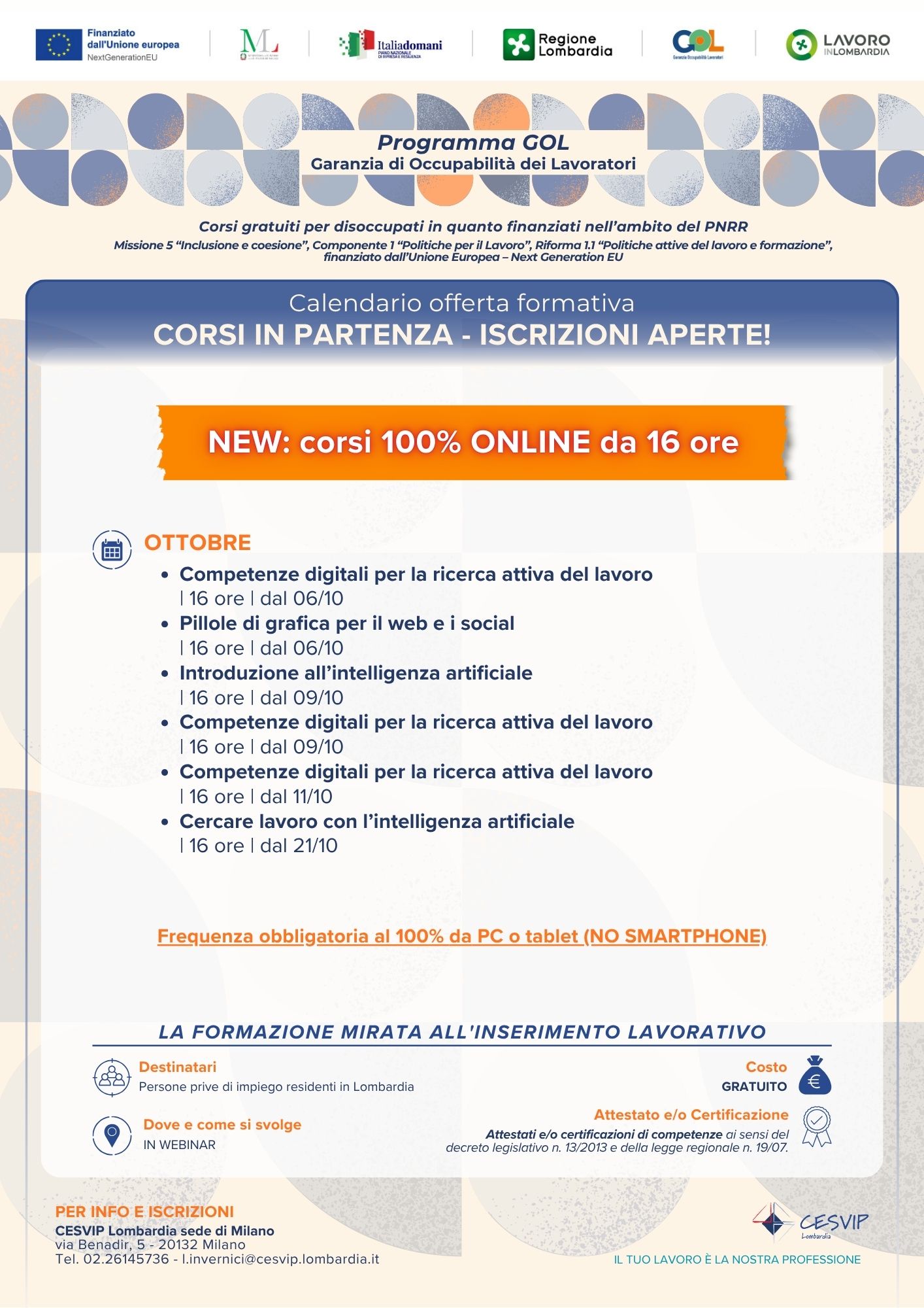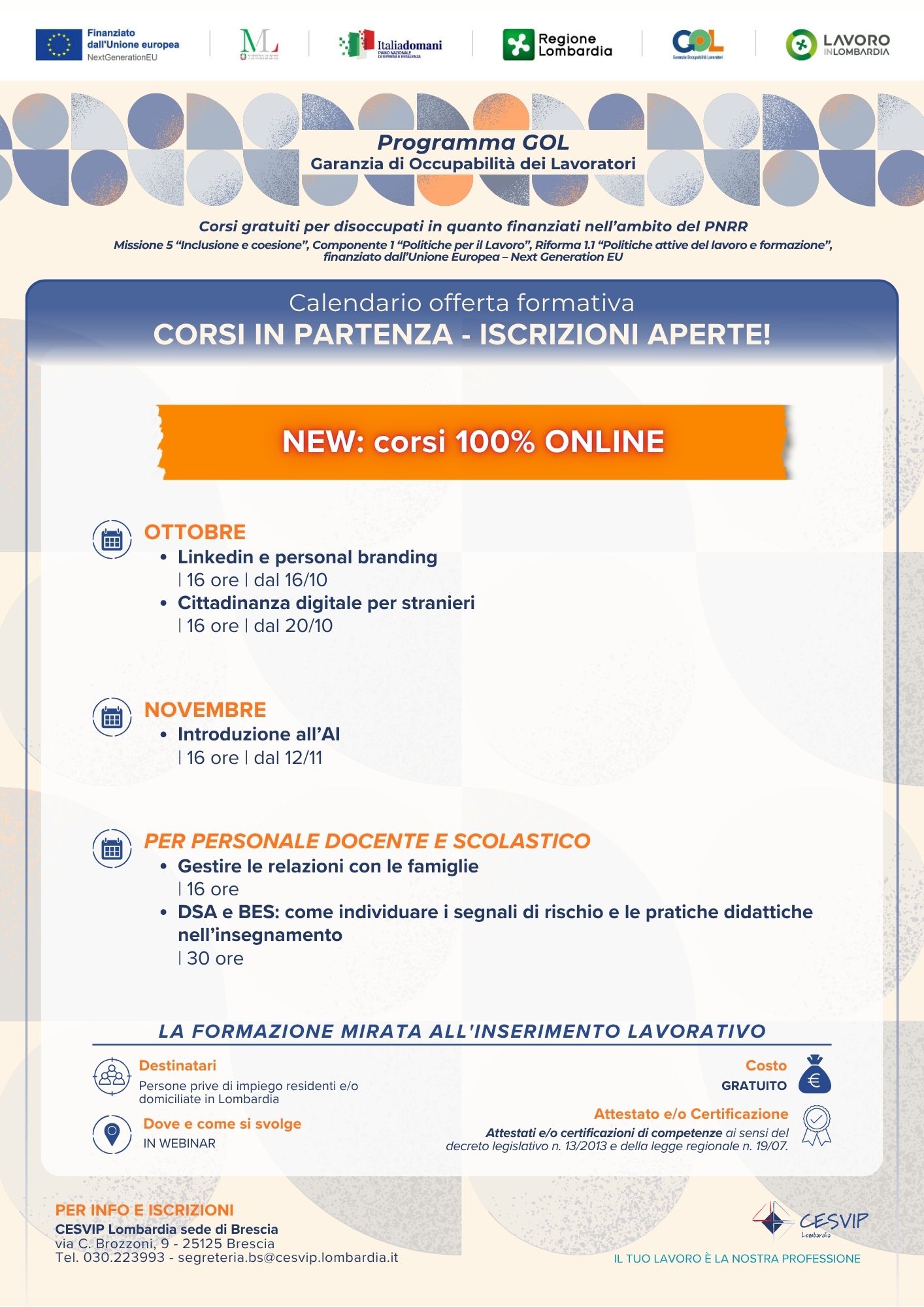 - corsi BREVI 100% ONLINE: ottobre-novembre