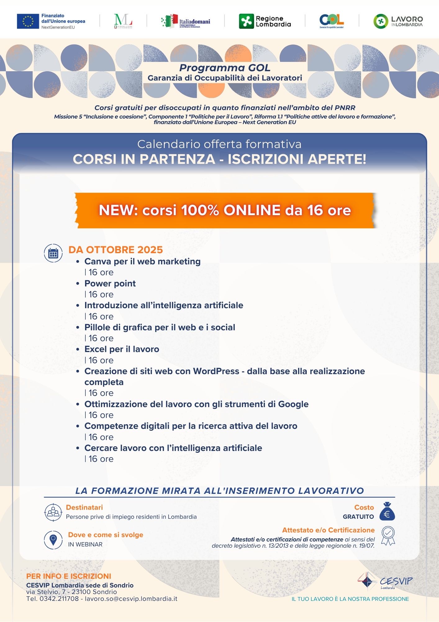NEW! Scopri anche i corsi 100% ONLINE da 16 ore